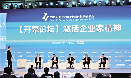 圖為“2017(第十六屆)中國企業(yè)領(lǐng)袖年會”開幕主題論壇現(xiàn)場。 記者 崔國強(qiáng)攝