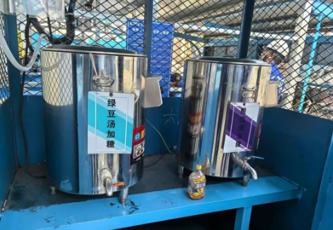七月以來,持續高溫天氣給一線員工帶來嚴峻考驗。北海造船充分利用現有空間,共搭建45處現場員工休息點,配備234套餐整體式桌椅和246個長條椅,改善現場休息環境;為在高溫下堅守崗位的142個一線班組職工送去防暑降溫禮包,為一線員工配備飲水點,供應綠豆湯、酸梅湯、大桶水,發放防暑降溫藥品;根據天氣情況動態調整夏季室外露天作業時間,采取錯峰避讓高溫時段、換班輪休等方式,在無立體交叉作業區域,設置遮陽網避免陽光直曬,在船艙/密閉空間安裝風機、除濕機,作業前30分鐘進行通風、除濕,為艙室作業人員提供防護;組織高溫作業職工進行身體健康檢查,開展防暑降溫培訓和應急演練,提升職工自我保護意識和應急處置能力。